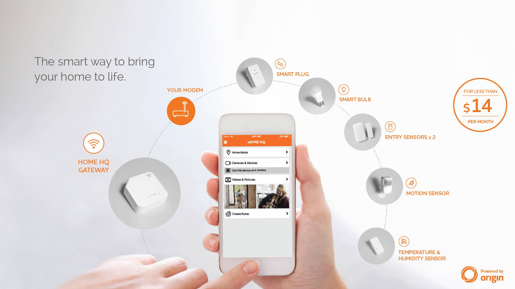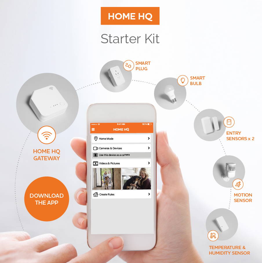 With Home HQ you simply connect the smart devices in your home to the Home HQ app on your mobile phone and you can monitor or control your home from anywhere, at any time.